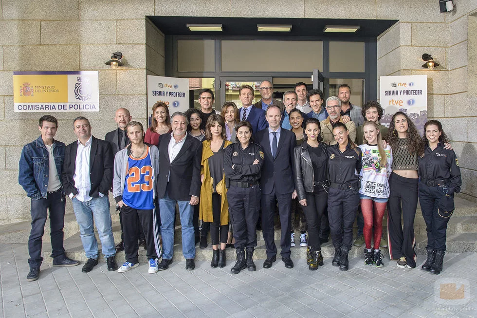 El elenco de actores al completo del drama policíaco de la cadena pública 'Servir y proteger' con Andrea del Río y Luisa Martín como protagonistas.