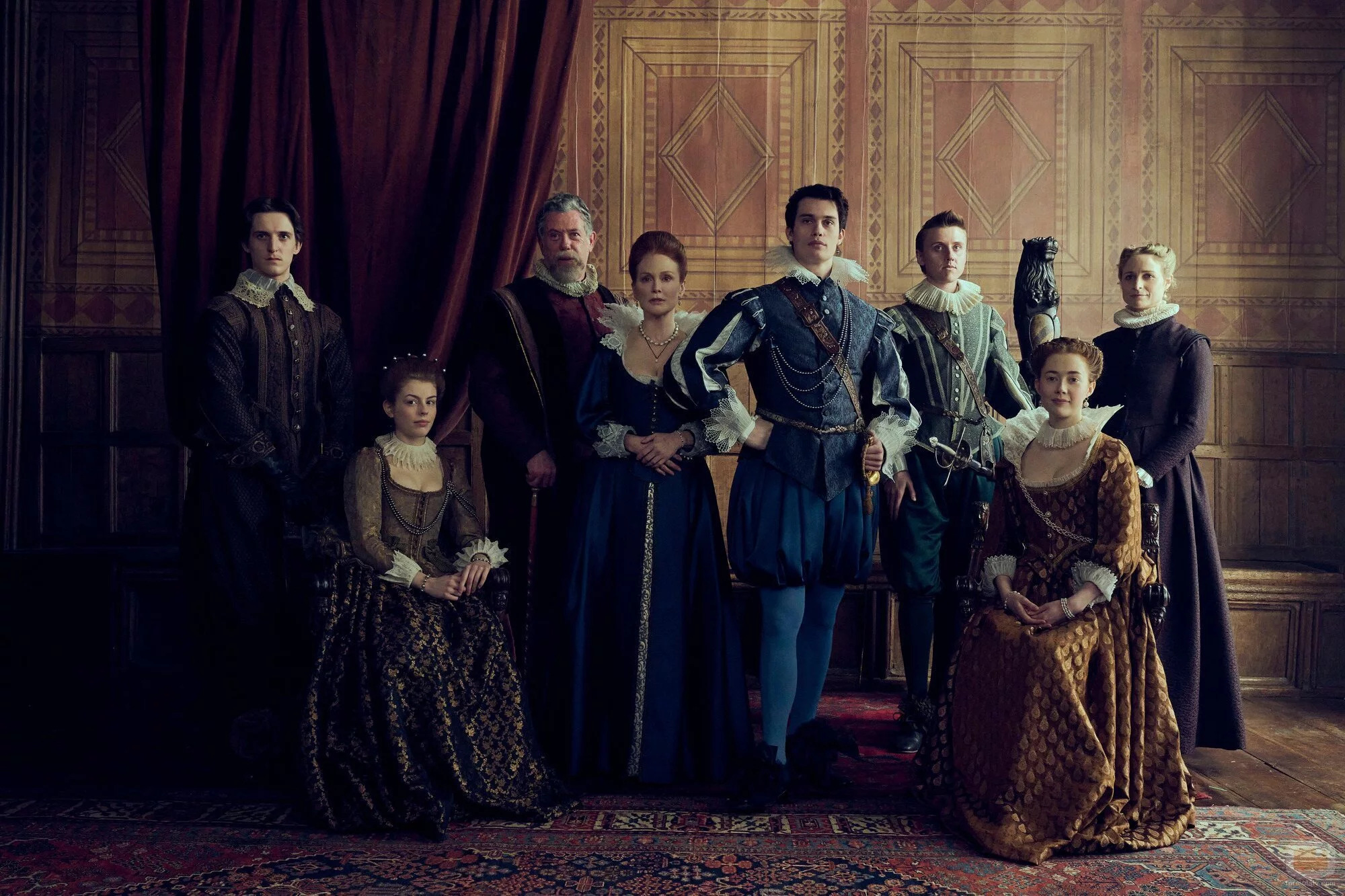 De izquierda a derecha: John Villiers (Tom Victor), Frances Coke (Amelia Gething), Sir Thomas Compton (Sean Gilder), Mary Villiers (Julianne Moore), George Villiers (Nicholas Galitzine), Kit Villiers (Jacob McCarthy), Susan Villiers (Alice Grant) y Sandie (Niamh Algar).