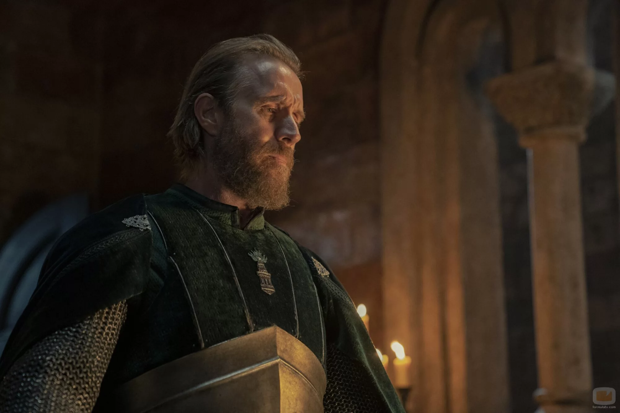 El actor, que aparece con gesto serio y preocupado, interpreta a la Mano del Rey de Viserys I en la serie de HBO inspirada en "Fuego y Sangre"