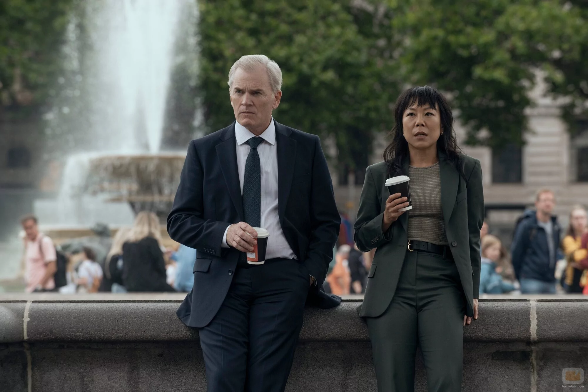 Richard Dillane y Ali Ahn en el 3x03 de 'The Diplomat'