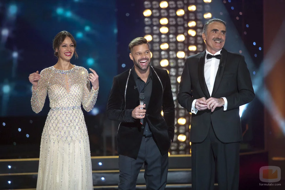 El cantante junto con Eva González y Juan y Medio, presentadores de '¡Feliz 2014!'