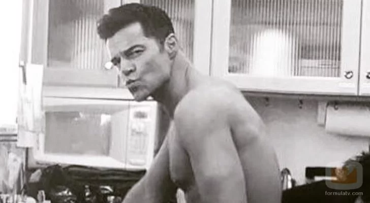 El cantante Ricky Martin posa con el torso desnudo y de forma sugerente en el set de grabación de la serie 'American Crime Story'.