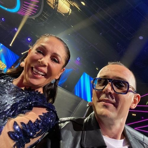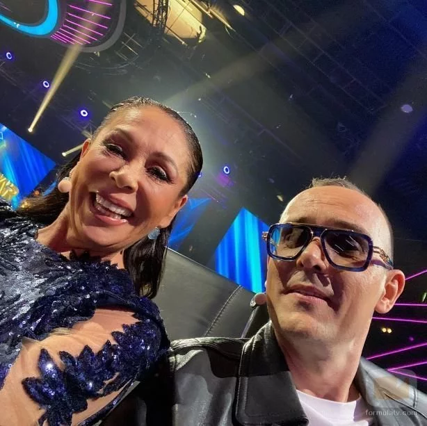 Risto Mejide e Isabel Pantoja se toman un "selfie" en un descanso de la grabación de 'Top Star. ¿Cuánto vale tu voz?'.
