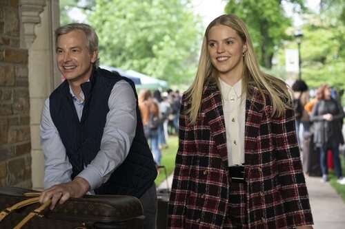 Rob Huebel y Reneé Rapp aparecen en una escena promocional del episodio 'Bienvenidos a la Universidad de Essex' de 'The Sex Lives of College Girls'.