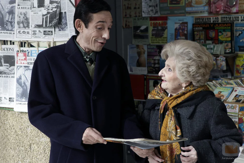 Desi (Roberto Cairo) y Sagrario (Amparo Pacheco) en un capítulo de la serie de RTVE titulada 'Cuéntame como pasó'.