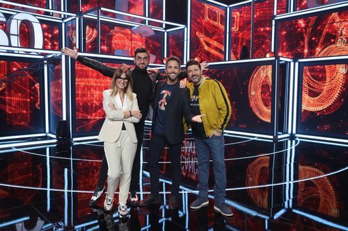 El presentador Roberto Leal posa junto al jurado de 'La mejor canción jamás cantada' de la segunda gala del programa.