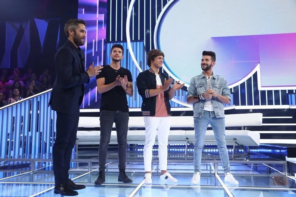 Roberto Leal junto a los tres aspirantes en duda para entrar en 'OT 2018'