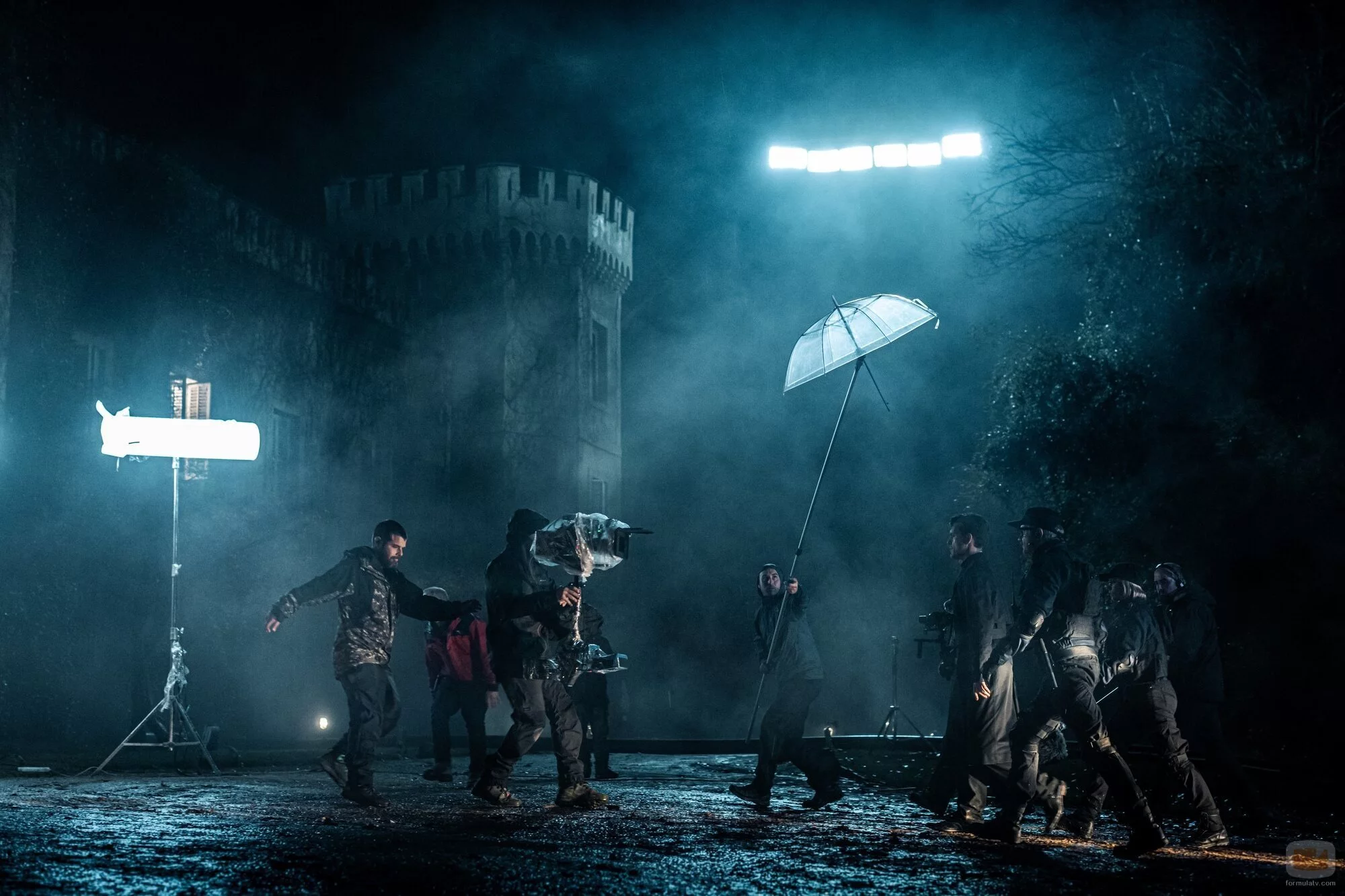 Fotos hechas durante el rodaje de una de las escenas de 'Berlín', el spin off de 'La casa de papel' que se estrenará en Netflix el próximo mes de diciembre.