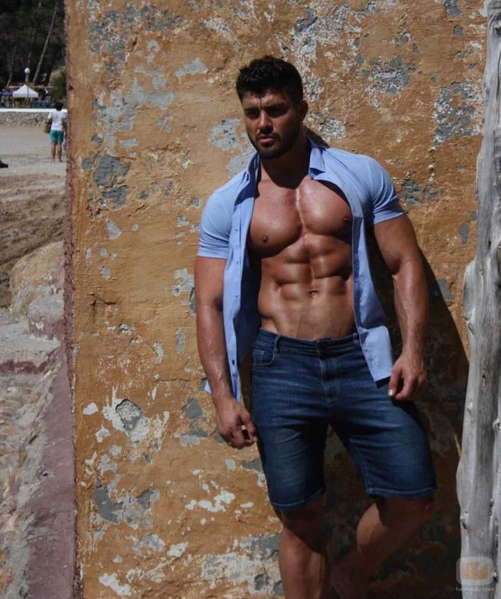 El concursante de 'La venganza de los ex', Rogan O'Connor posa con una camisa azul abierta que deja ver su cuerpo de gimnasio.