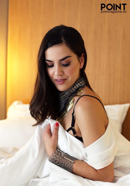 La cantante Roko, posa entre sábanas en actitud tierna y cariñosa con una llamativa pulsera para el próximo número de Point Magazine.