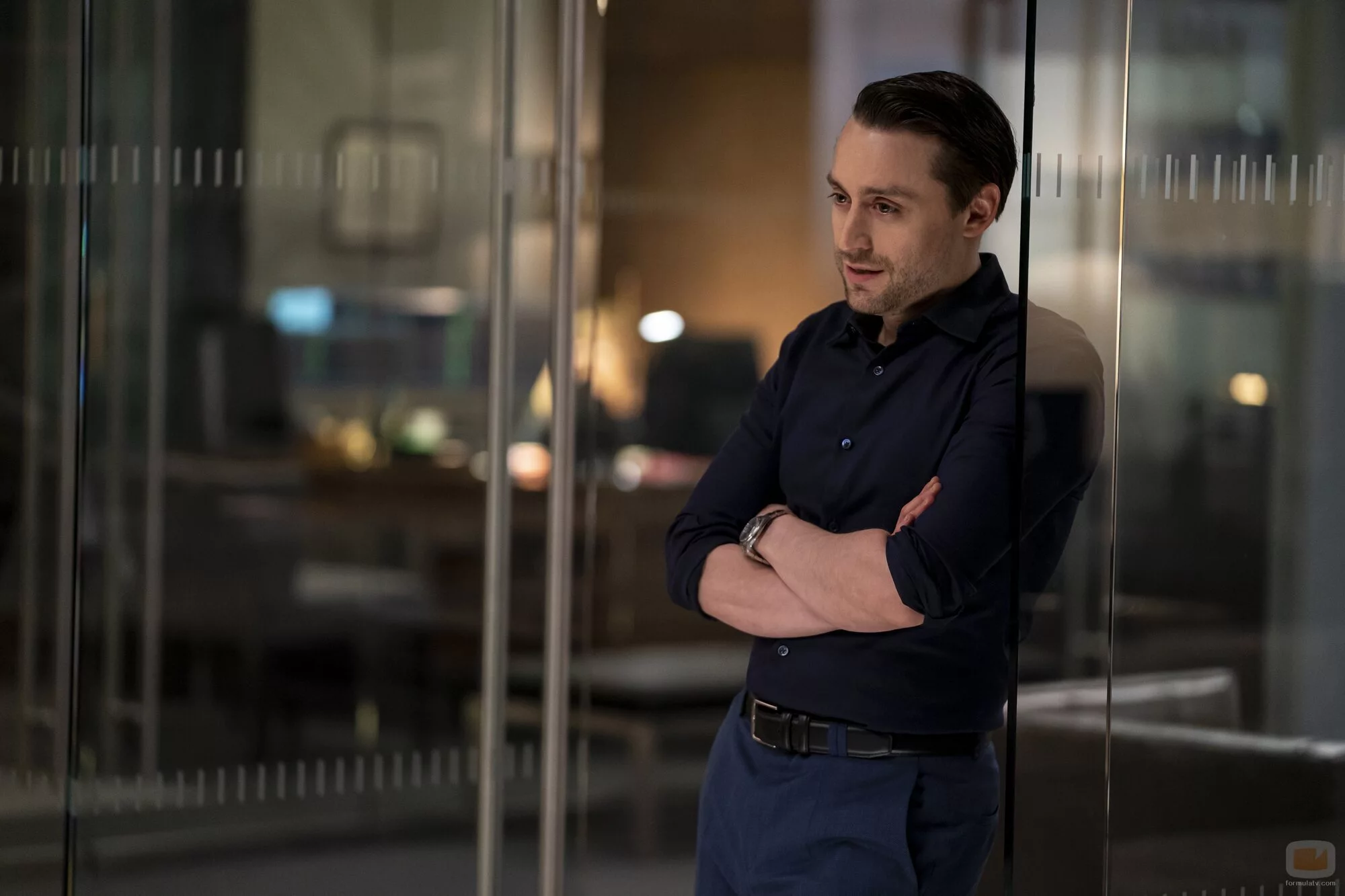 Kieran Culkin espera en la puerta de un despacho metido en la piel de Roman Roy en la tercera temporada de la ficción de HBO.