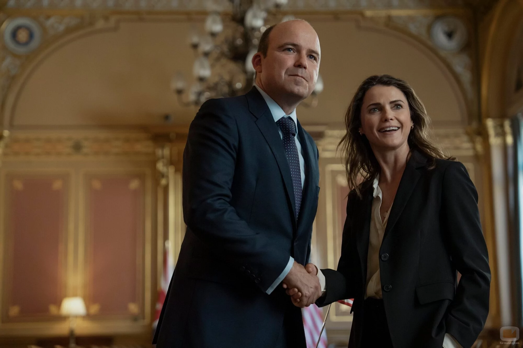 Keri Russell y Rory Kinnear aparecen en una foto promocional del capítulo 'Arden' de 'La diplomática', la serie de televisión de Netflix.