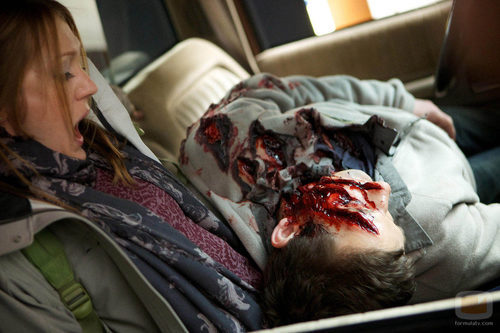 Rosalee con un cadáver en su regazo en una escena de 'Grimm'