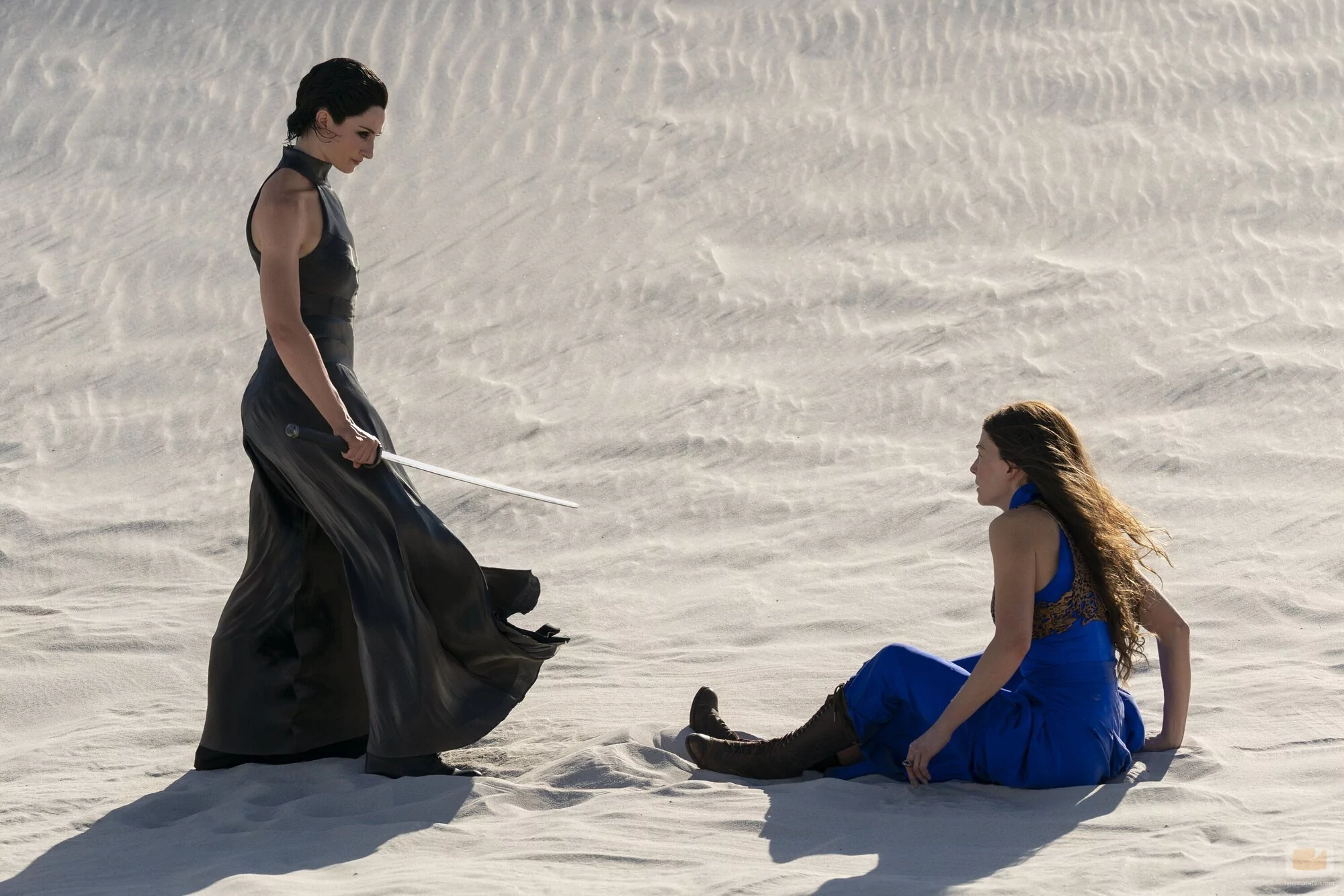 Rosamund Pike y Natasha O'Keeffe en 3x04 'El camino hacia la Lanza' de 'La rueda del tiempo'