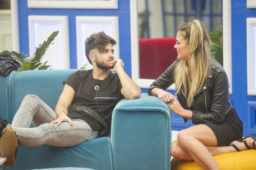 Rubén y Alyson charlan en el salón de la casa de Guadalix de la Sierra durante la séptima gala de 'GH Revolution'.