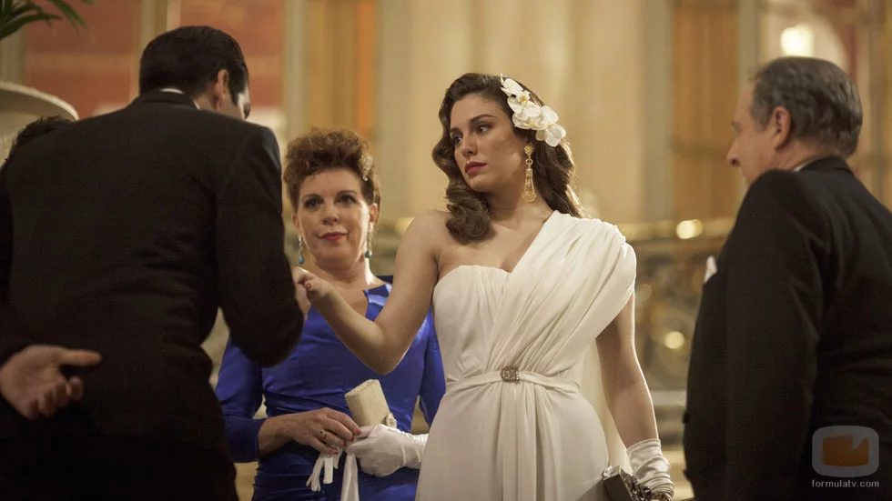 Ramón Serrano Suñer da la bienvenida a Sonsoles de Icaza recogiéndole la mano de una manera respetuosa en 'Lo que escondían sus ojos'.
