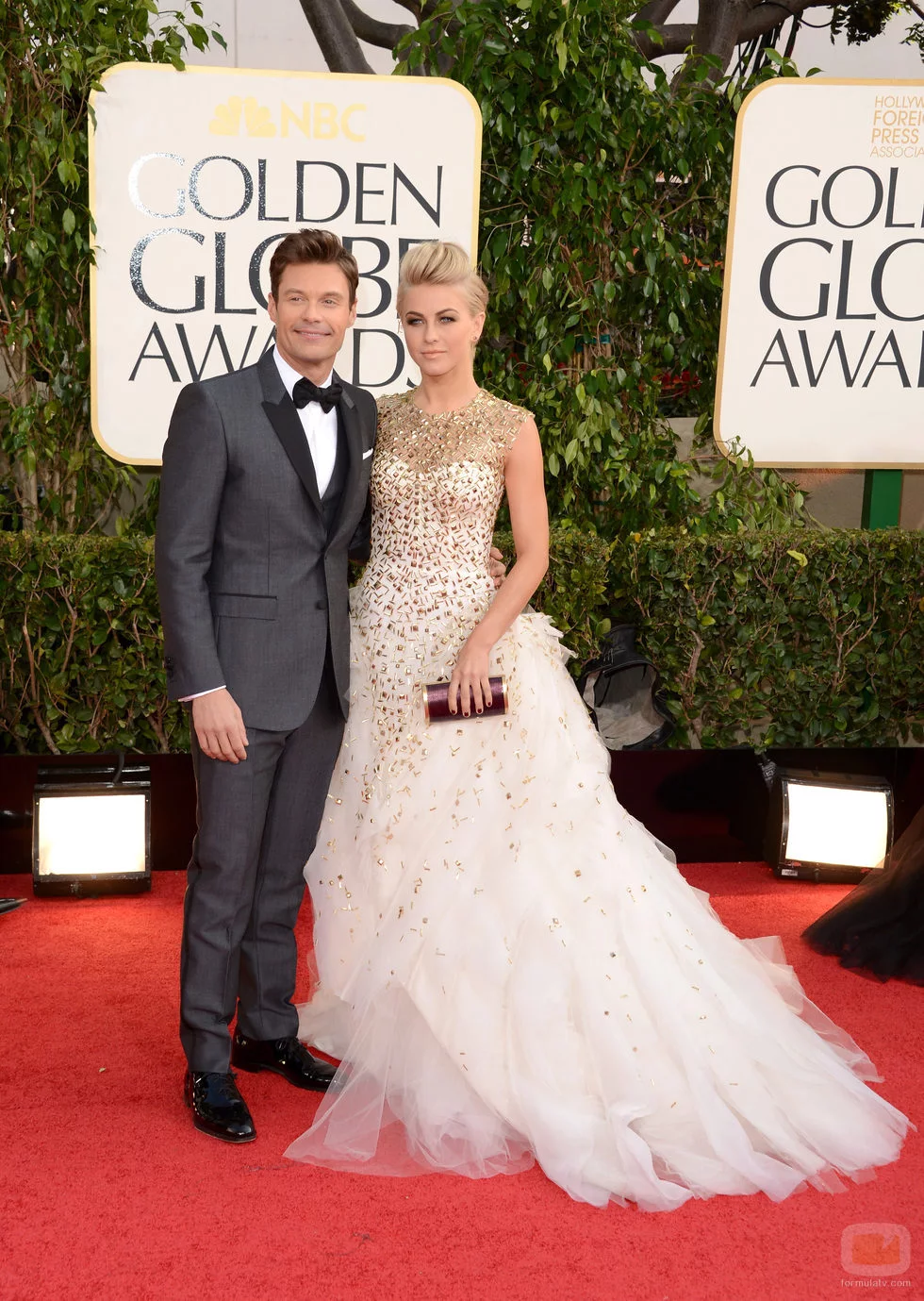 Ryan Seacrest y Julianne Hough en los Globos de Oro 2013