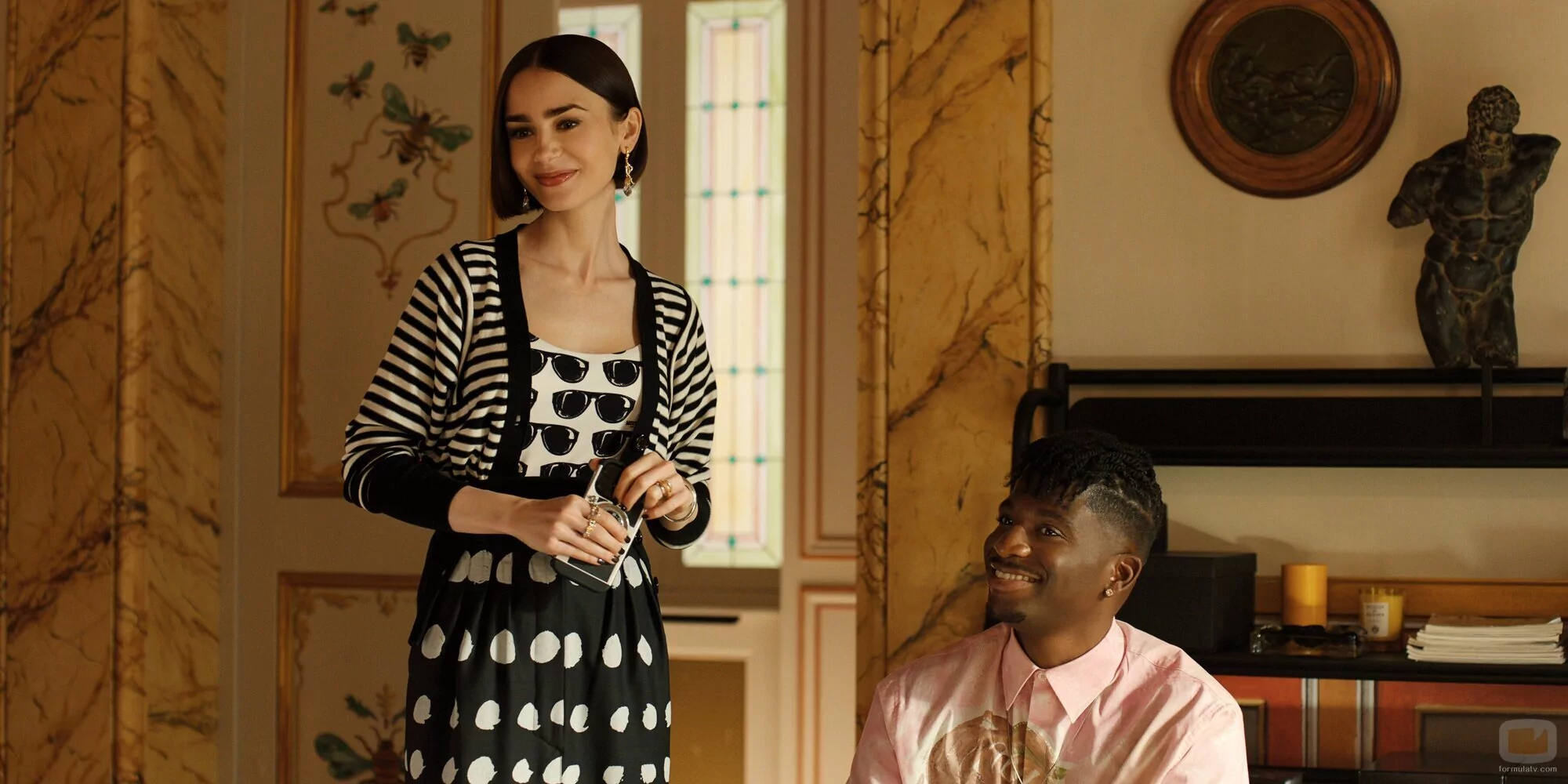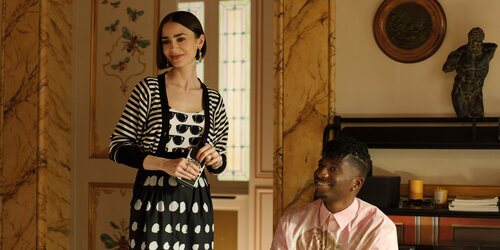 Samuel Arnold y Lily Collins en Capítulo 3 titulado 'Problemas con Intimissimi' de 'Emily en París'