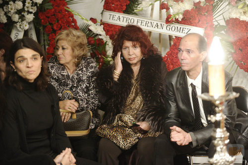 La actriz Sara Montiel en la capilla ardiente de Tony Leblanc en el Teatro Fernán Gómez de Madrid.