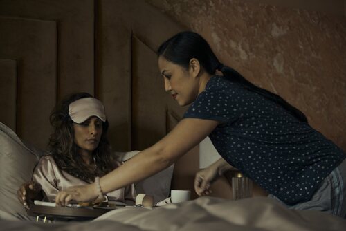 Sarayu Blue y Amelyn Pardenilla en el 1x05 de 'Expatriadas'