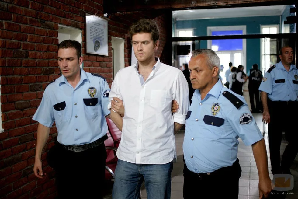 Selim, acompañado por dos policías en comisaría, en 'Fatmagül'
