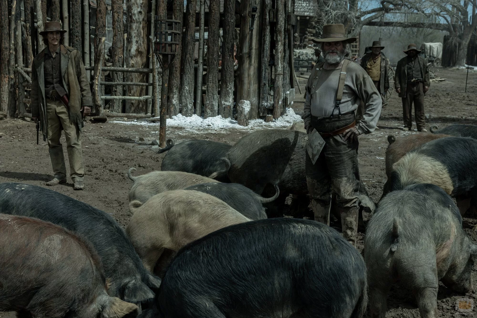 Shea Whigham y Nick Hargrove aparecen en una foto del episodio 'Episodio 4' de la serie 'Érase una vez el Oeste'.