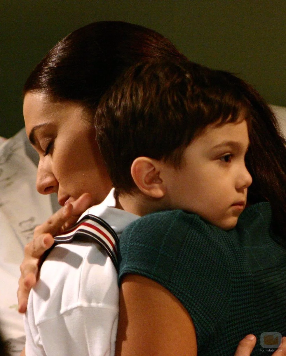Sherezade Evliyaoglu, protagonista de la ficción 'Las mil y una noches' que puede verse en Nova, abraza a su hijo Kaan.