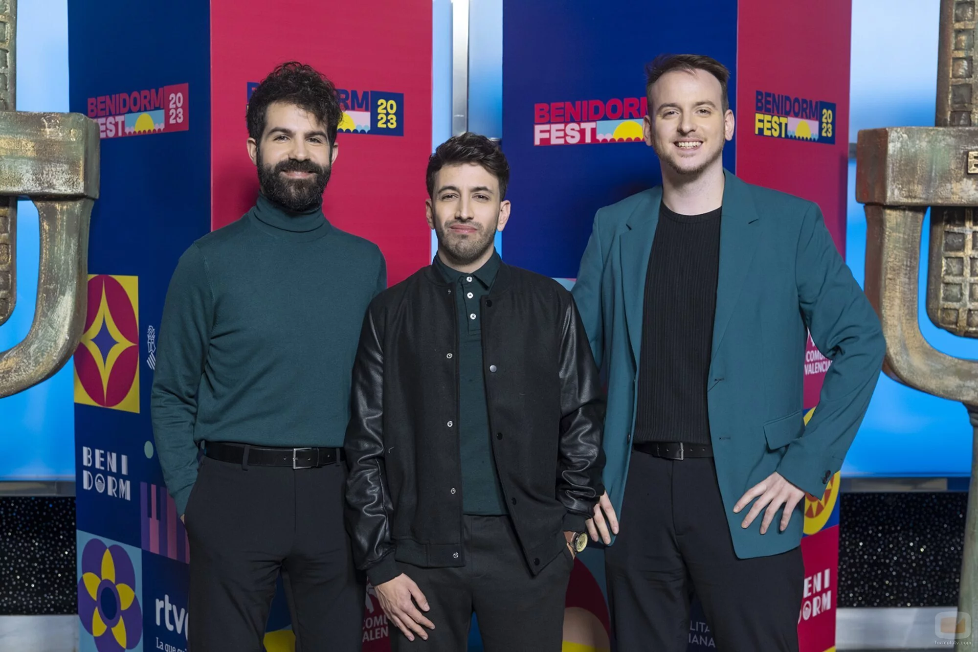 Posado de Albert Sort, Uri Plana y Andreu Manyós, durante la inauguración del Benidorm Fest 2023, nuestra preselección para Eurovisión.