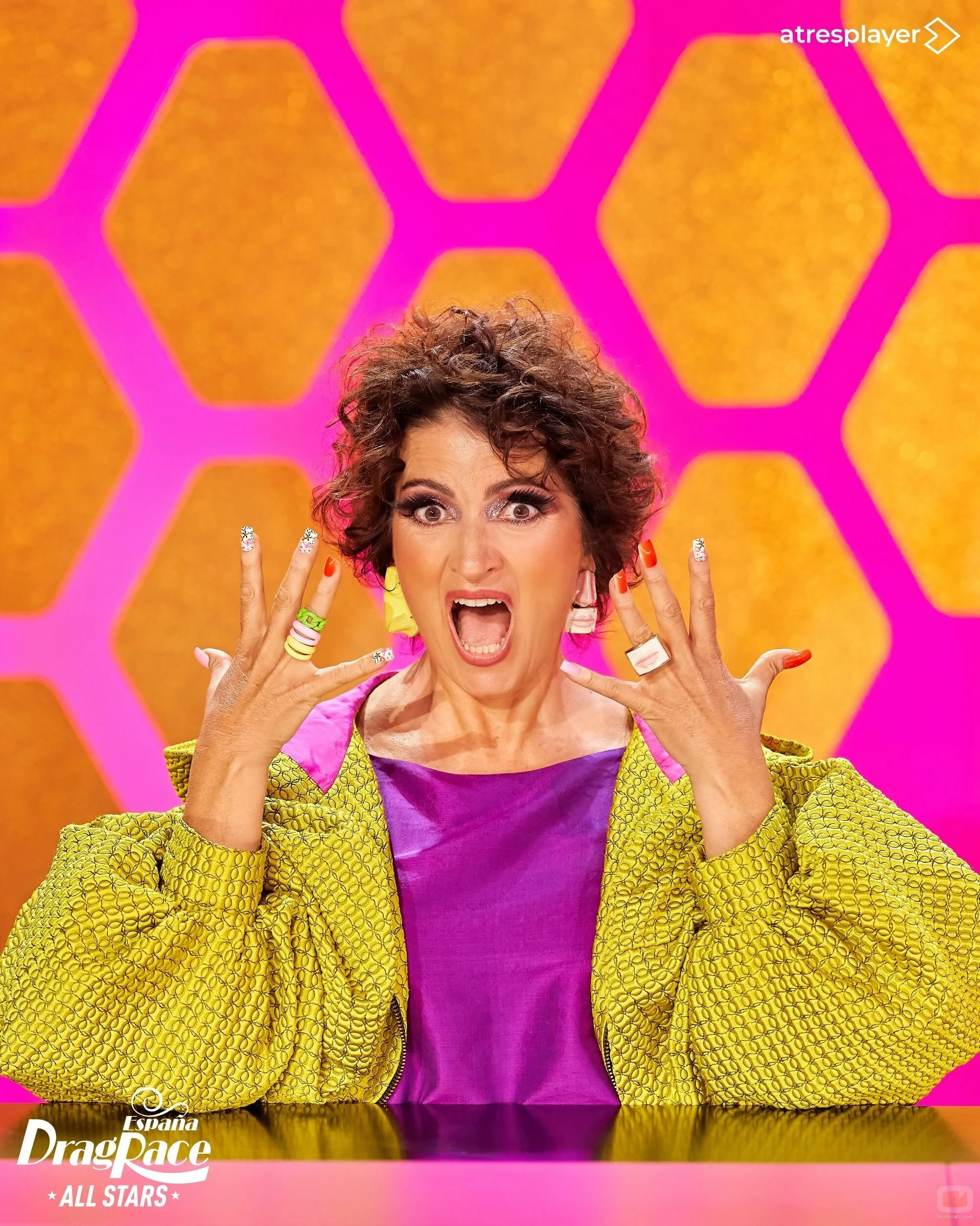 Silvia Abril posa en el plató de la primera edición de 'Drag Race España: All Stars' como jurado invitada del segundo episodio.