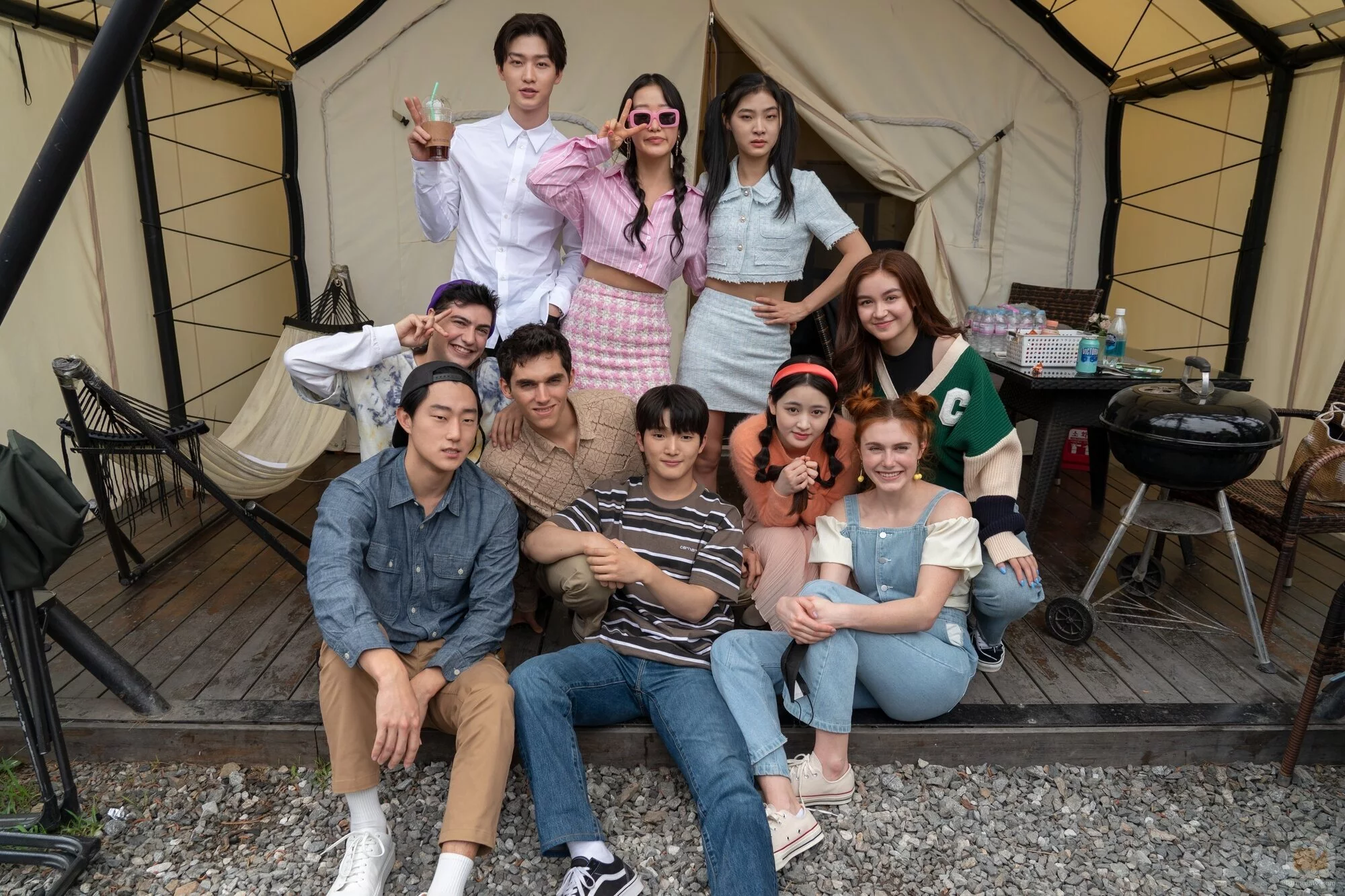 Han Bi Ryu, Peter Thurnwald, Gia Kim, Théo Augier, Minyeong Choi, Anna Cathcart, Sunny Oh, Sang Heon Lee y Jocelyn Shelfo aparecen en una imagen del capítulo 'Sin pensarlo' de la serie 'Besos, Kitty'.