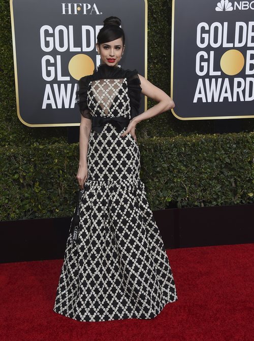 Sofia Carson en la alfombra roja de los Globos de Oro 2019