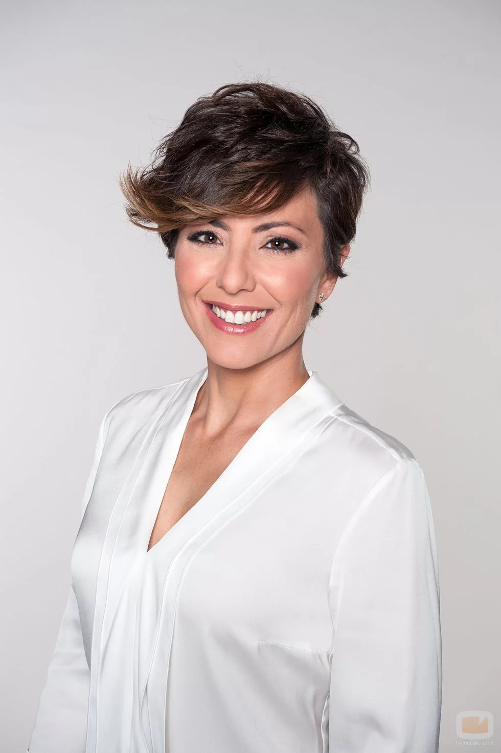 Sonsoles Ónega en 'Ya es mediodia', su nuevo programa de noticias y actualidad, luce sonriente y con una camisa blanca en el posado oficial de Telecinco.