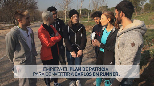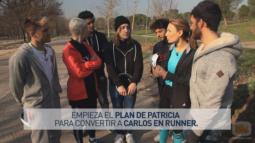 La cantante y la recién separada boyband juvenil escuchan atentamente las indicaciones de la psicóloga Patricia Ramírez en 'Nacidos para correr'.
