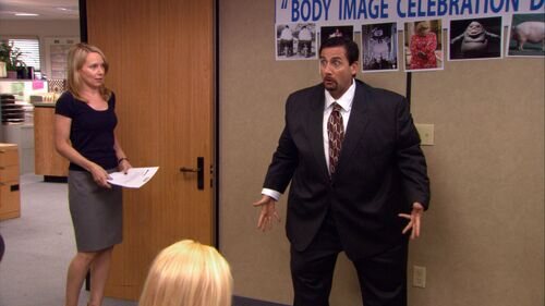 Steve Carell y Amy Ryan aparecen en una foto del capítulo 'Concurso de adelgazamiento: 1.ª parte' de la serie 'The Office'.