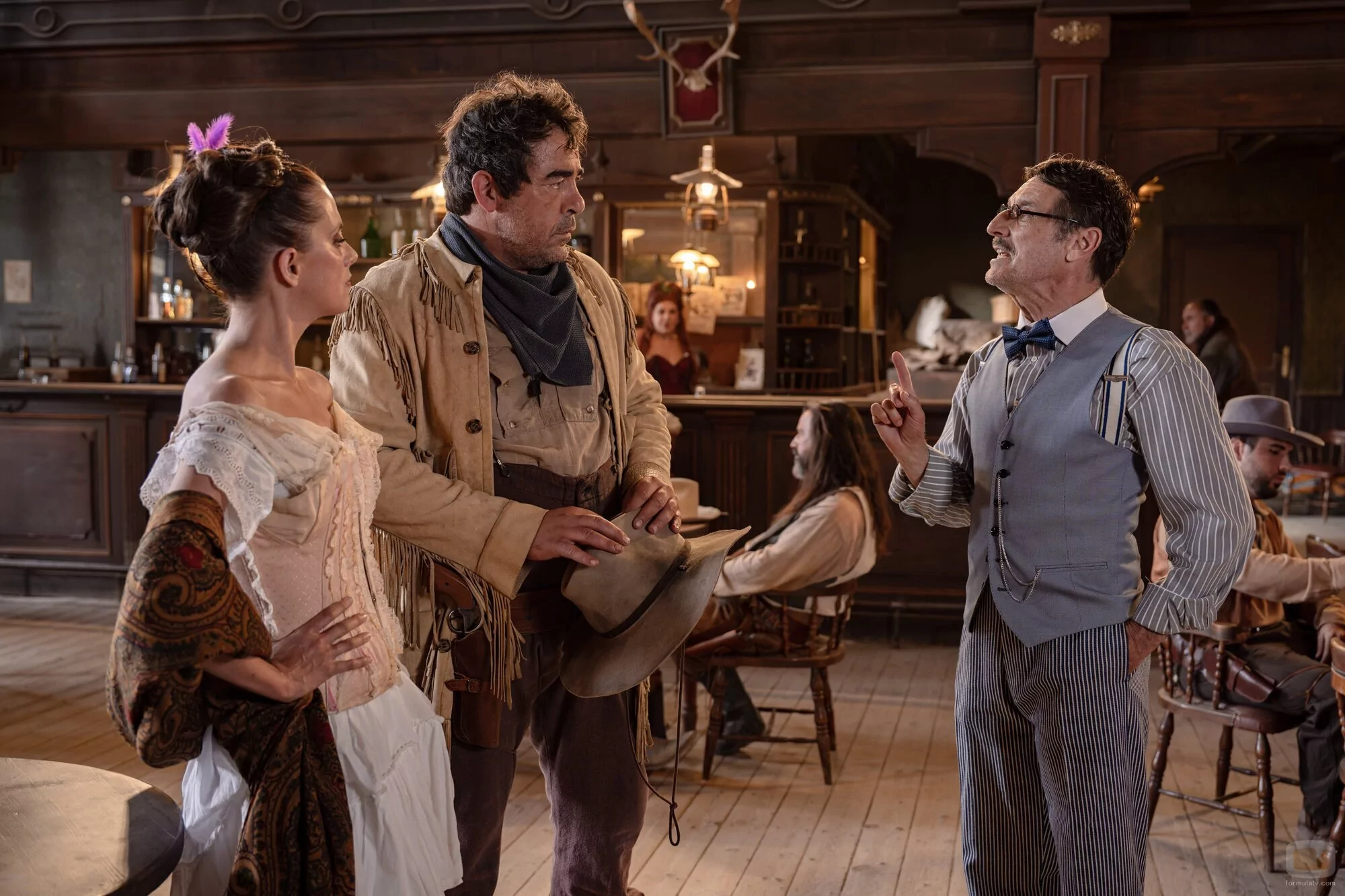 Miren Ibarguren, Pablo Chiapella y Carlos Chamarro aparecen en una escena del episodio 'Una ciudad sin ley, un mormón mojón y un saloon a doble altura' de 'La que se avecina'.