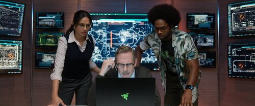 Milan Carter, Scott Thompson y Aparna Brielle aparecen en una escena promocional del capítulo 'Oro líquido' de 'FUBAR'.