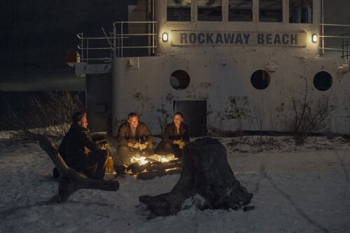 Shaun Sipos, Maria Sten y Alan Ritchson aparecen en una foto del episodio 'Un tipo de altos vuelos' de la serie 'Reacher'.