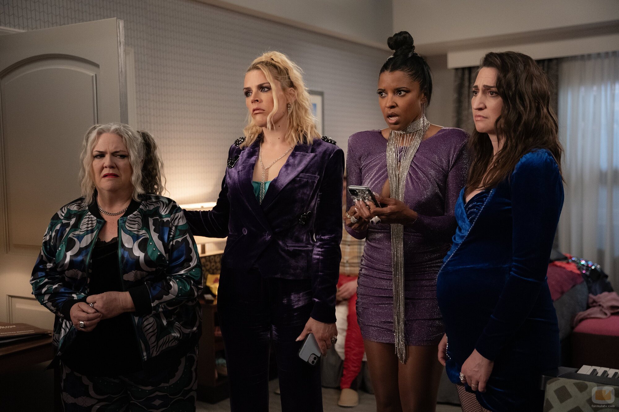 Busy Philipps, Paula Pell, Sara Bareilles y Renée Elise Goldsberry aparecen en una escena promocional del capítulo 3x05 de la serie 'Girls5eva'.