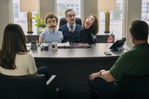 Monica Barbaro, Arnold Schwarzenegger y Scott Thompson aparecen en una imagen promocional del capítulo 1x04 de la serie 'Fubar'.