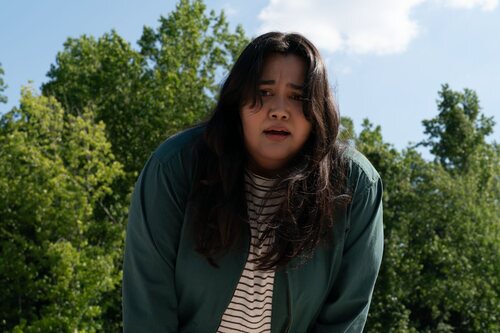 La intérprete Karen Rodriguez en una foto promocional del episodio 1x07 de 'Las esposas cazadoras', la serie de televisión de Netflix.