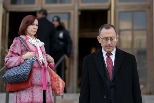 Michael Emerson y Carrie Preston aparecen en una foto promocional del capítulo 'Una mujer enfadada' de la serie 'Elsbeth'.