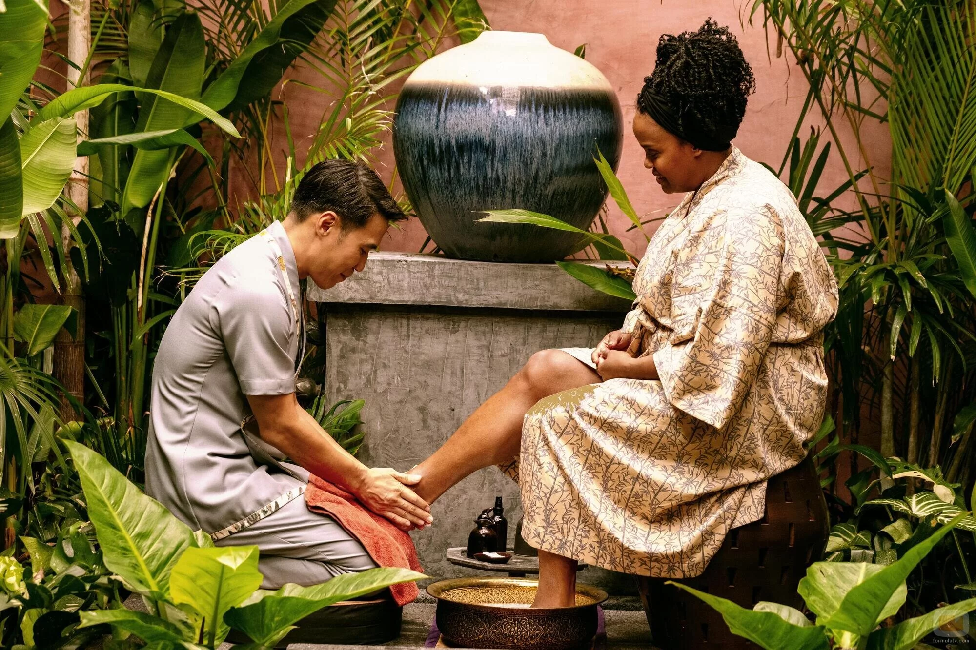 Natasha Rothwell y Dom Hetrakul aparecen en una foto del episodio 'Special Treatments' de 'The White Lotus' con fecha de estreno el Domingo, 23 de Febrero de 2025.