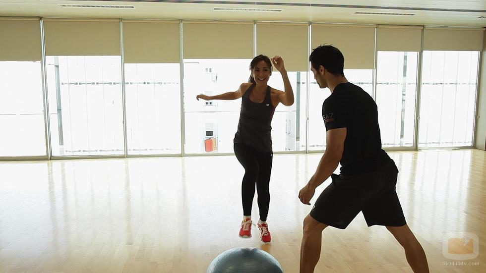 La protagonista de 'We Love Tamara' realizando una tabla de ejercicios en el gimnasio.