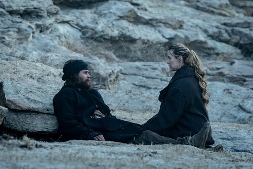 Betty Gilpin y Taylor Kitsch aparecen en una imagen del capítulo 'Episodio 6' de la serie 'American Primeval'.