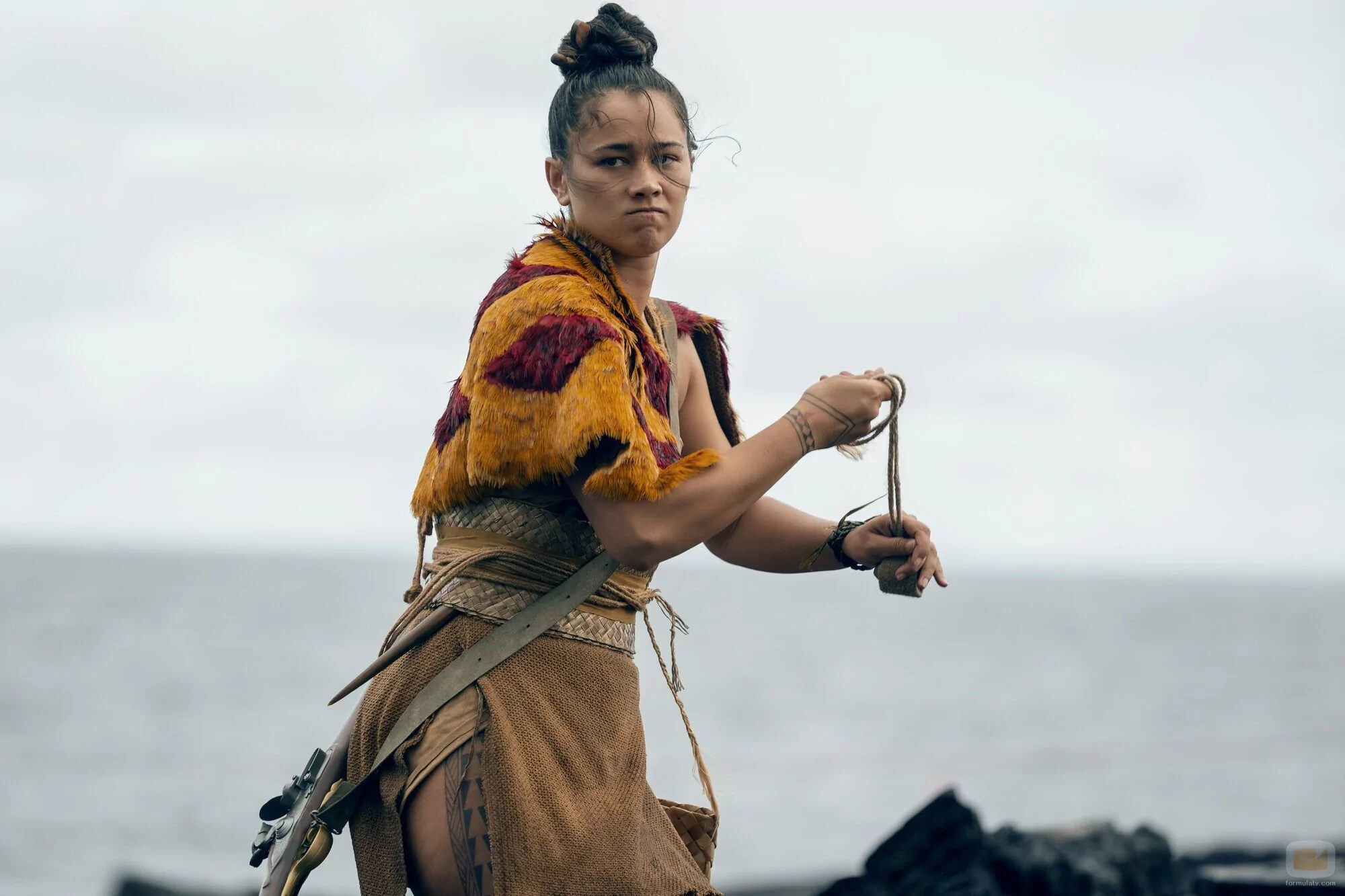 La intérprete Te Ao O'Hinepehinga en una foto promocional del episodio 'El desierto negro' de 'Chief of War', la serie de televisión de Apple TV+.