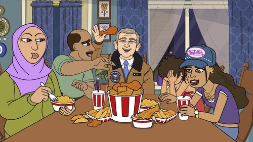 Foto promocional del capítulo '¡Fiesta de pijamas con el Presidente!' de la serie '#1 Happy Family USA' con fecha de estreno el Jueves, 17 de Abril de 2025.