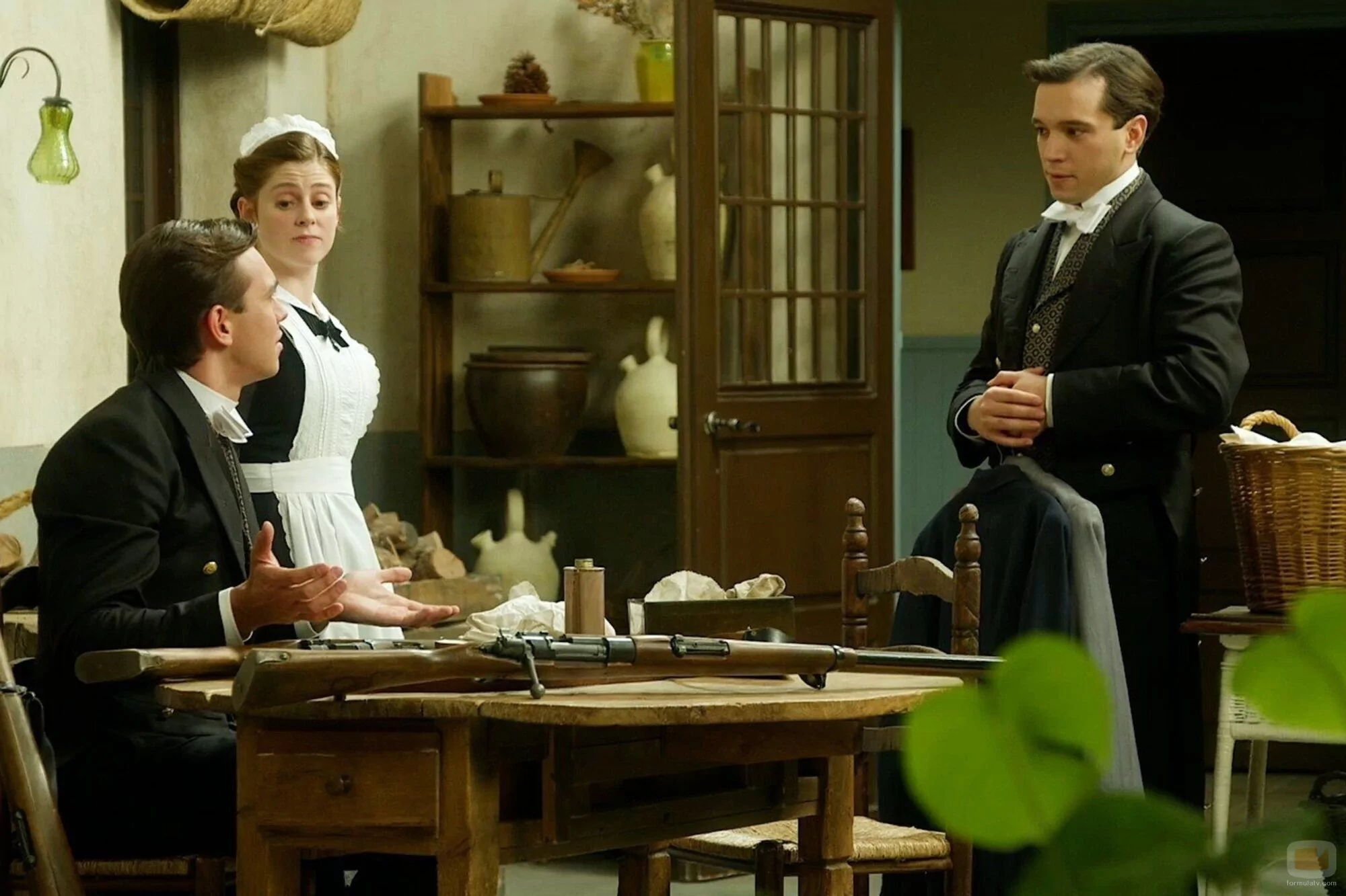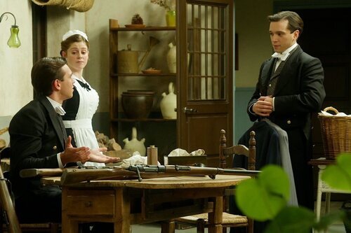 Jose Miguel Blanco, Sara Molina y Manu Imízcoz aparecen en una foto promocional del episodio 5x21 de la serie 'La promesa'.