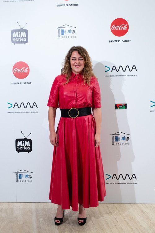 La actriz Teresa Hurtado de Ory, conocida por su papel en 'Bandolera' acude a los Premios MiM 2019 y posa a cámara con un elegante vestido largo de color rojo.