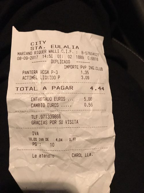 Ticket de compra que demuestra que Aída Nízar no hurtó ningún producto. Este comprobante será utilizado para emprender acciones legales el supermercado que ha difundido las imágenes.