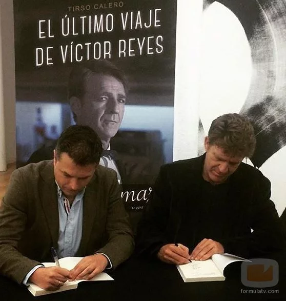 El guionista Tirso Calero, aparece en la presentación de su primera novela "El último viaje de Víctor Reyes", junto al actor Juanjo Artero.